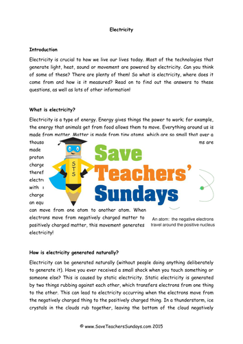Cross-Curricular Reading Comprehension Worksheets: D-20 of 36 Many people do not really understand how electricity works. They just know that when they need power to run an appliance, they have to plug it into the wall. ... Access Content